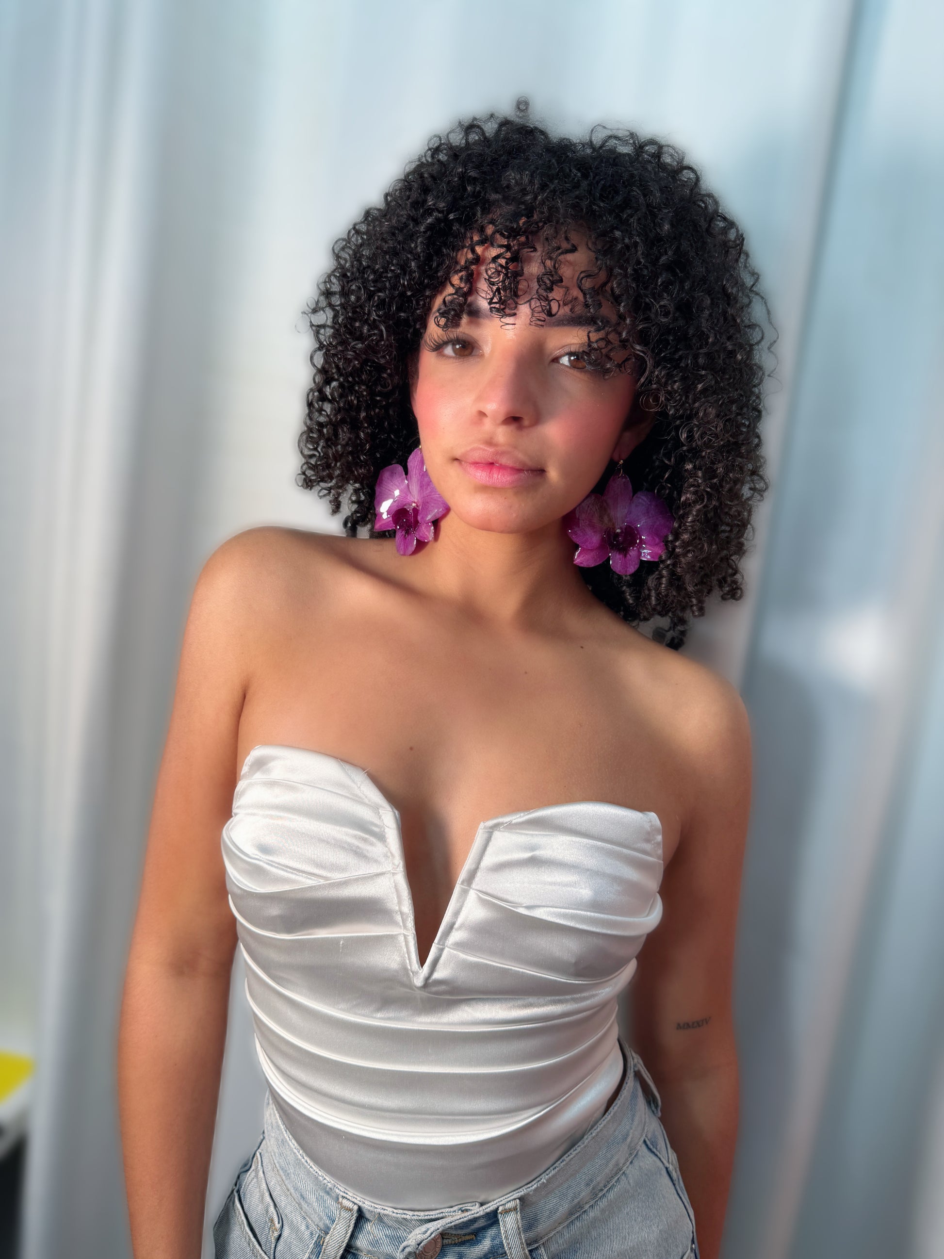 Estos aretes están elaborados con orquídea Dendrobium real, cuidadosamente preservada para conservar su textura, forma y belleza natural. Cada flor es trabajada a mano y encapsulada, transformándose en una pieza elegante, llamativa y verdaderamente única.