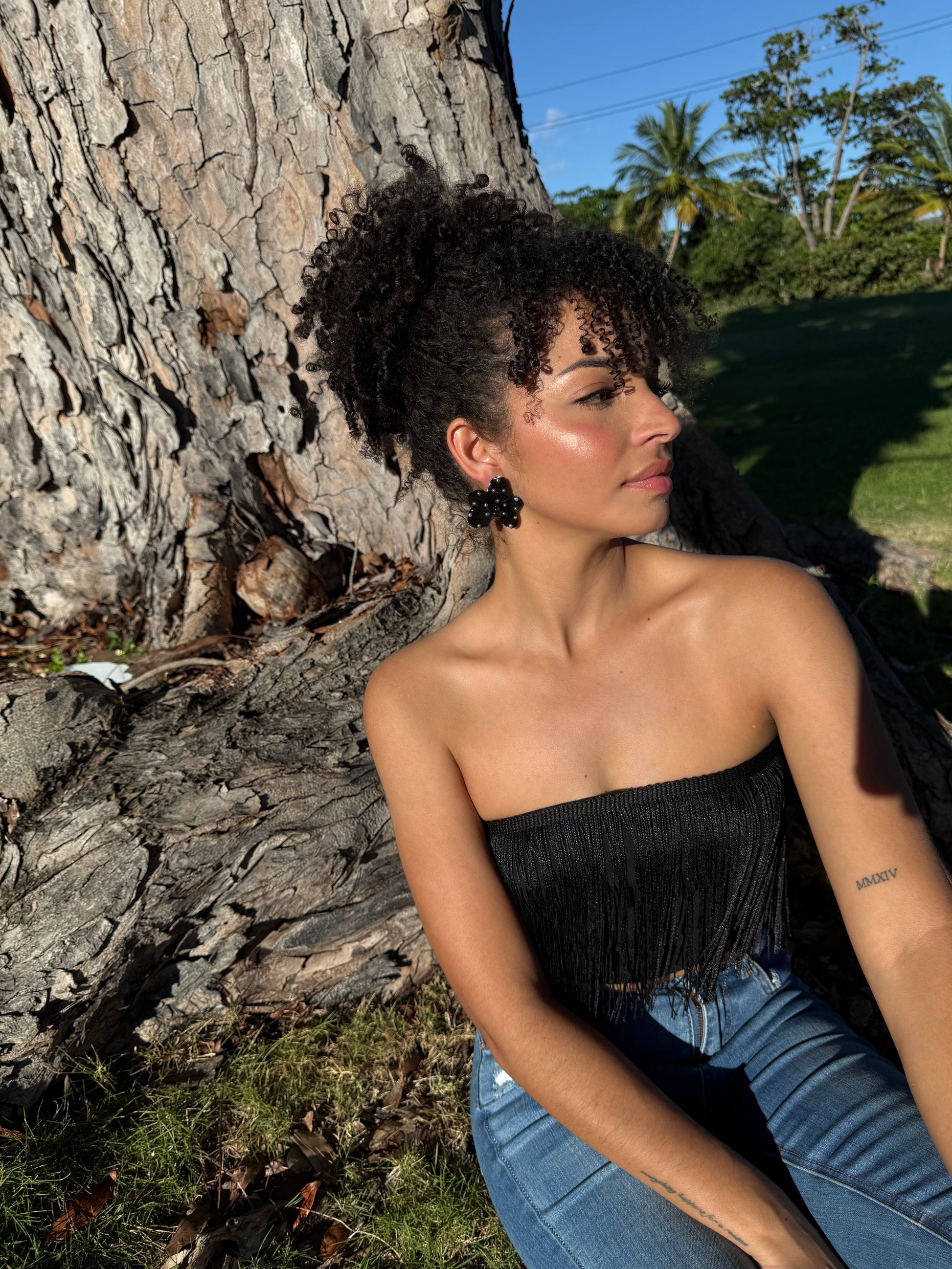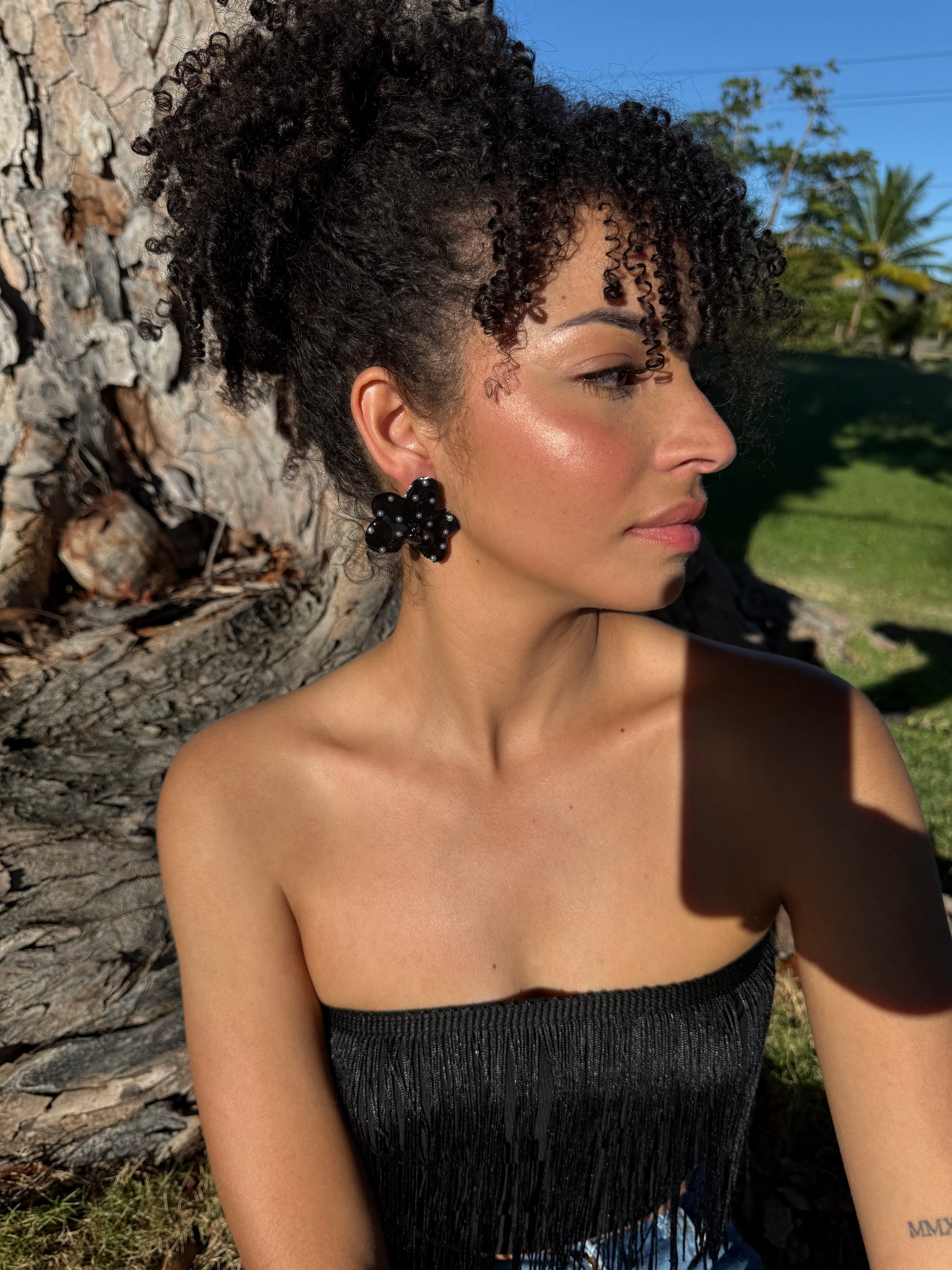 Este tono profundo y brillante resalta la textura natural de la flor, las perlas le dan un toque sofisticado creando un estilo único que no verás en ningún lugar.
