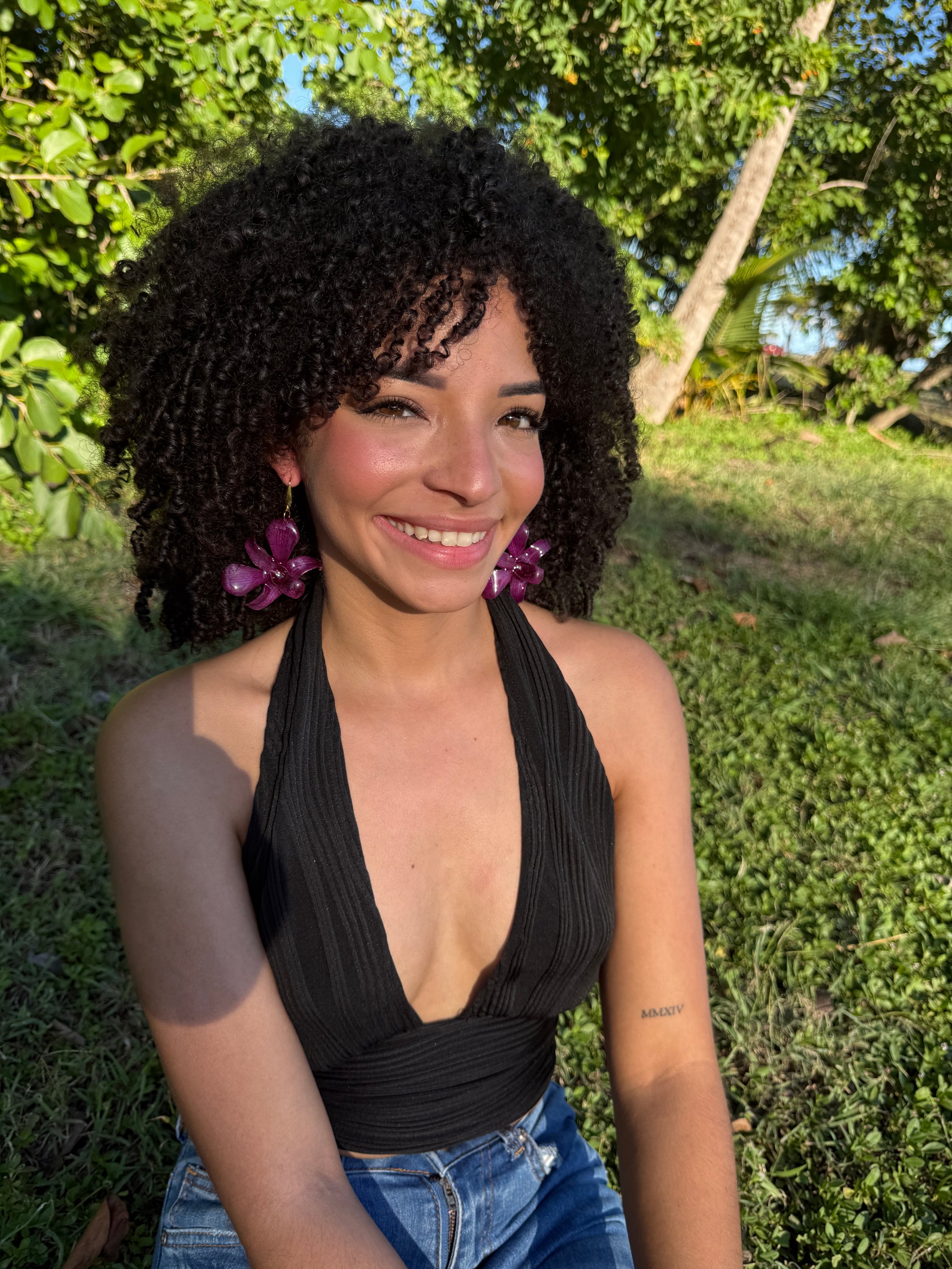 Estos aretes están creados con una orquídea real preservada, cuidadosamente trabajada para mantener su forma, textura y belleza natural. Su brillo y presencia los convierten en un accesorio protagonista, perfecto para añadir elegancia y un toque artístico a cualquier look.✨