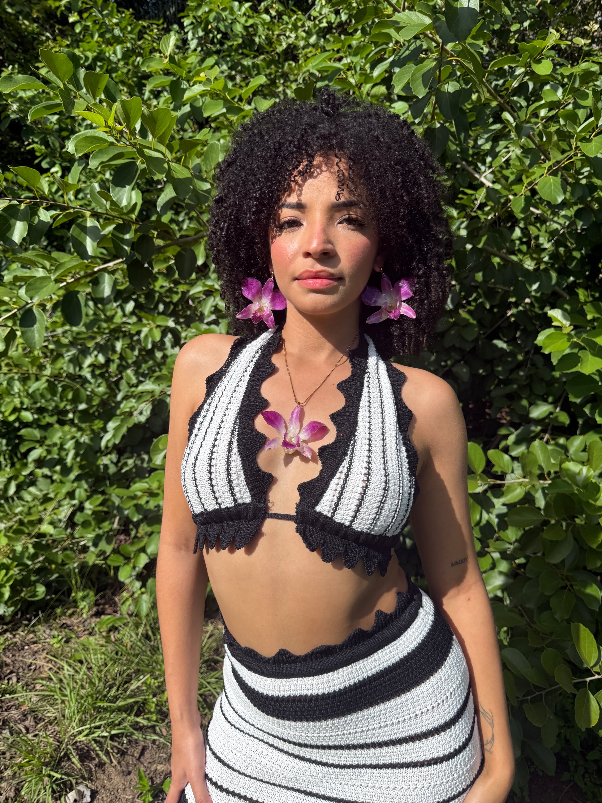 Este Holiday Orchid Set incluye un collar y un par de aretes creados con orquídeas reales Dendrobium, preservadas para mantener su forma, sus tonos vibrantes y su belleza natural.