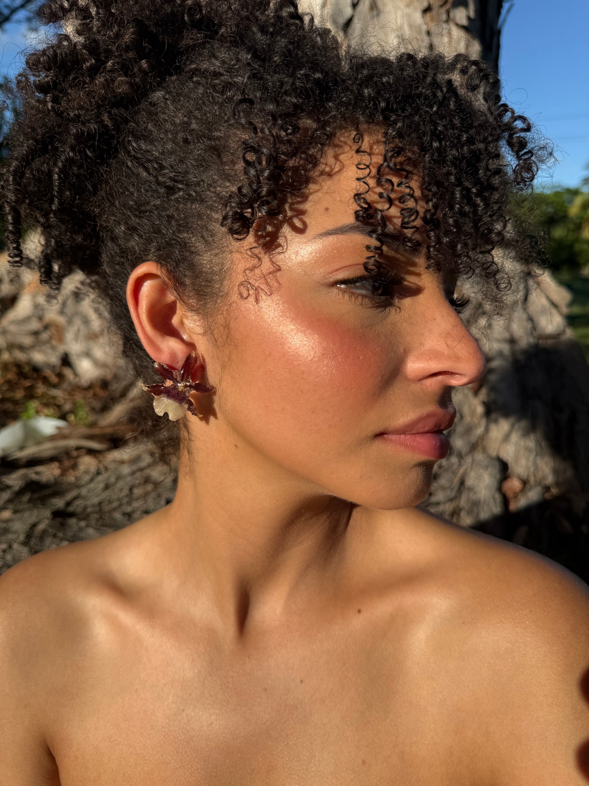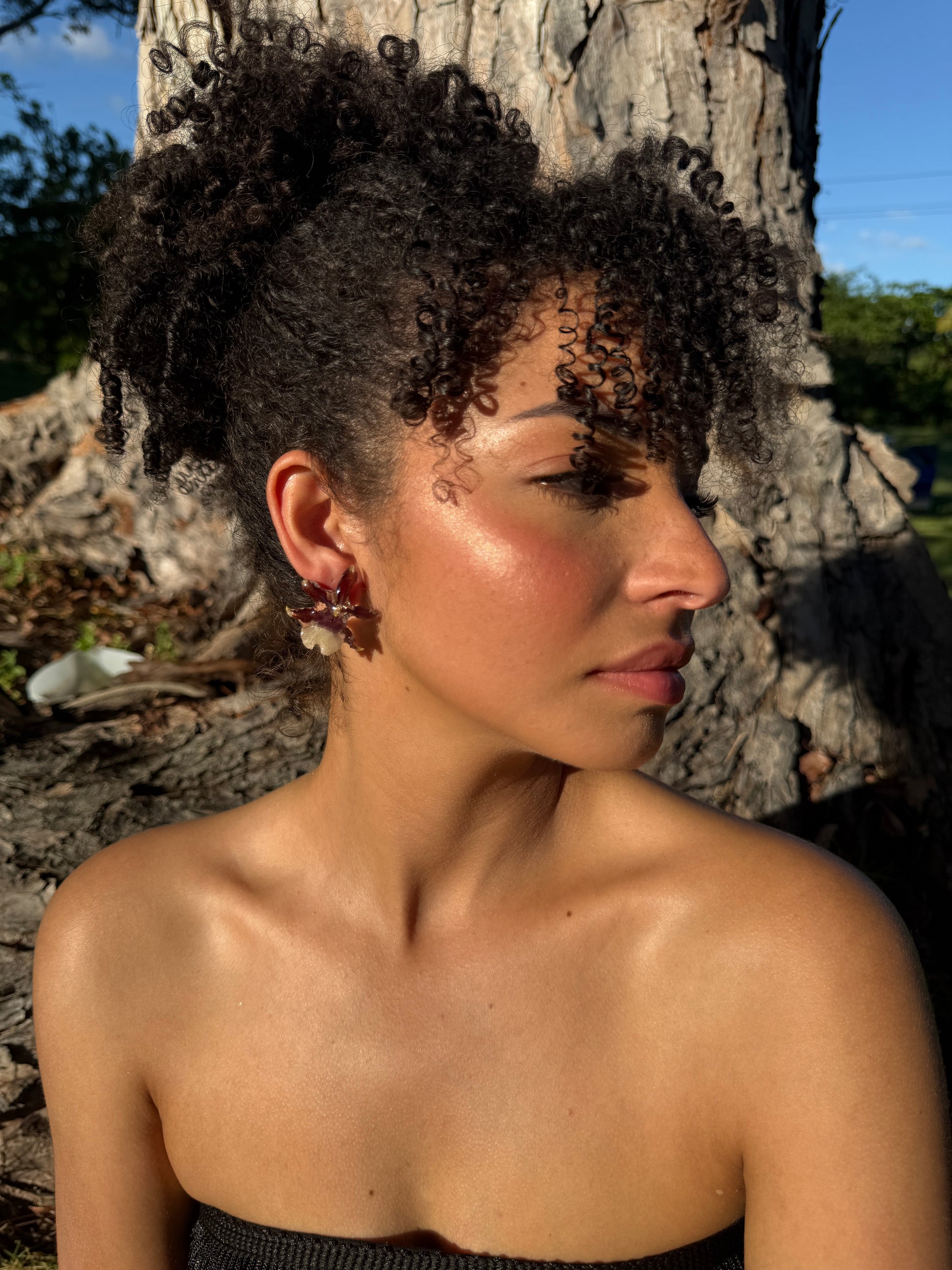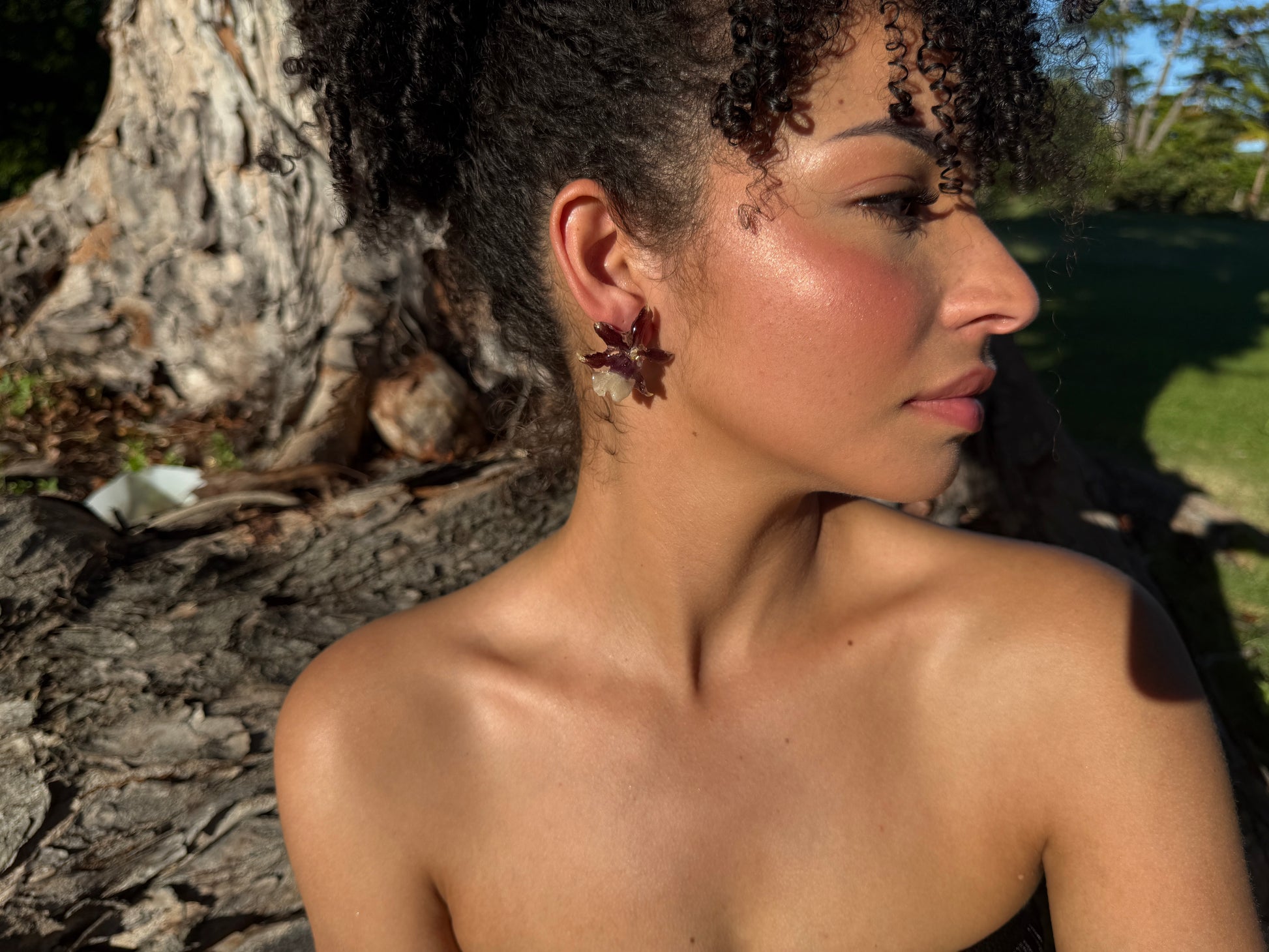 Cada flor fue preservada cuidadosamente para mantener su estructura natural, creando un accesorio liviano, elegante y lleno de carácter.