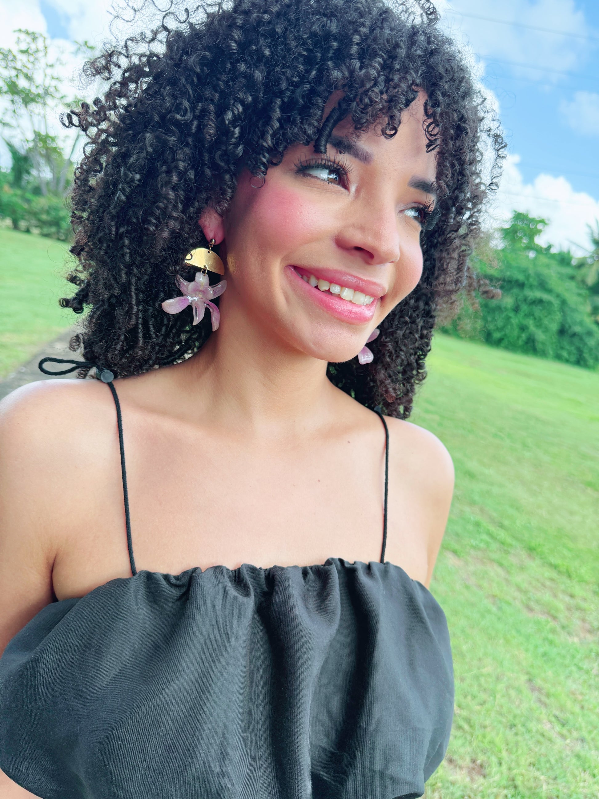 Estos aretes están elaborados con orquídeas Dendrobium naturales, preservadas cuidadosamente para conservar su forma y color.