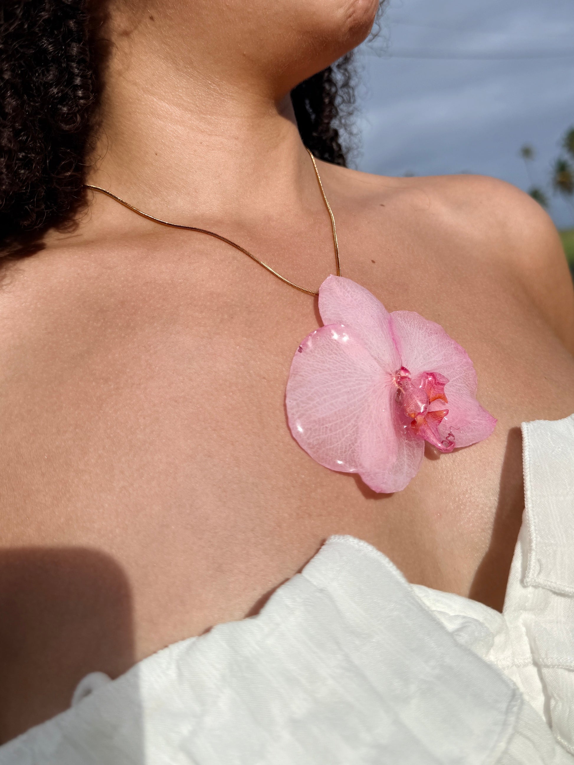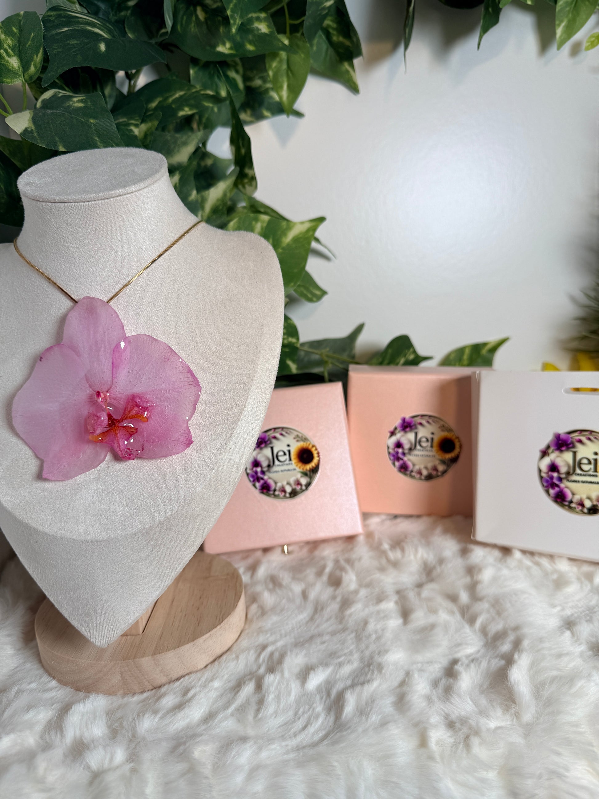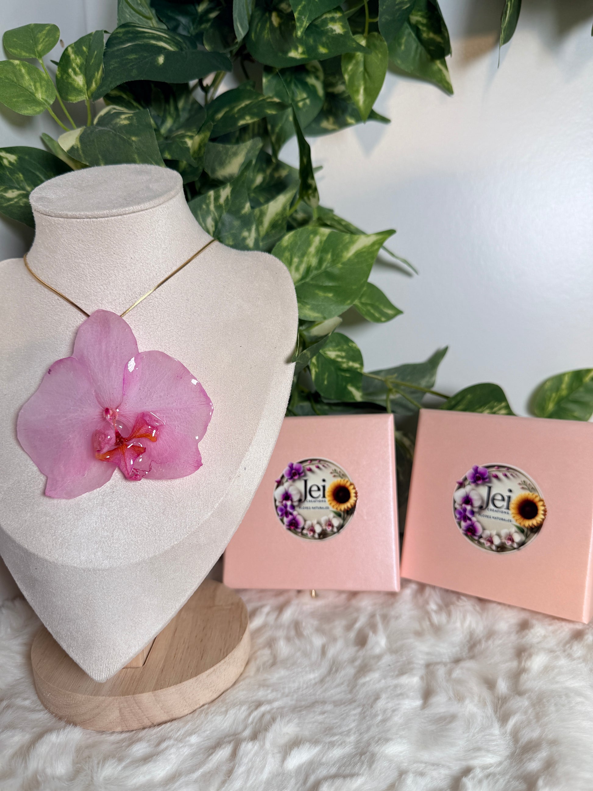 Este delicado collar presenta una orquídea natural en tonos rosados, preservada cuidadosamente en resina para conservar su belleza de forma eterna. Una pieza que transmite amor, suavidad y ese vínculo especial que solo mamá sabe crear.