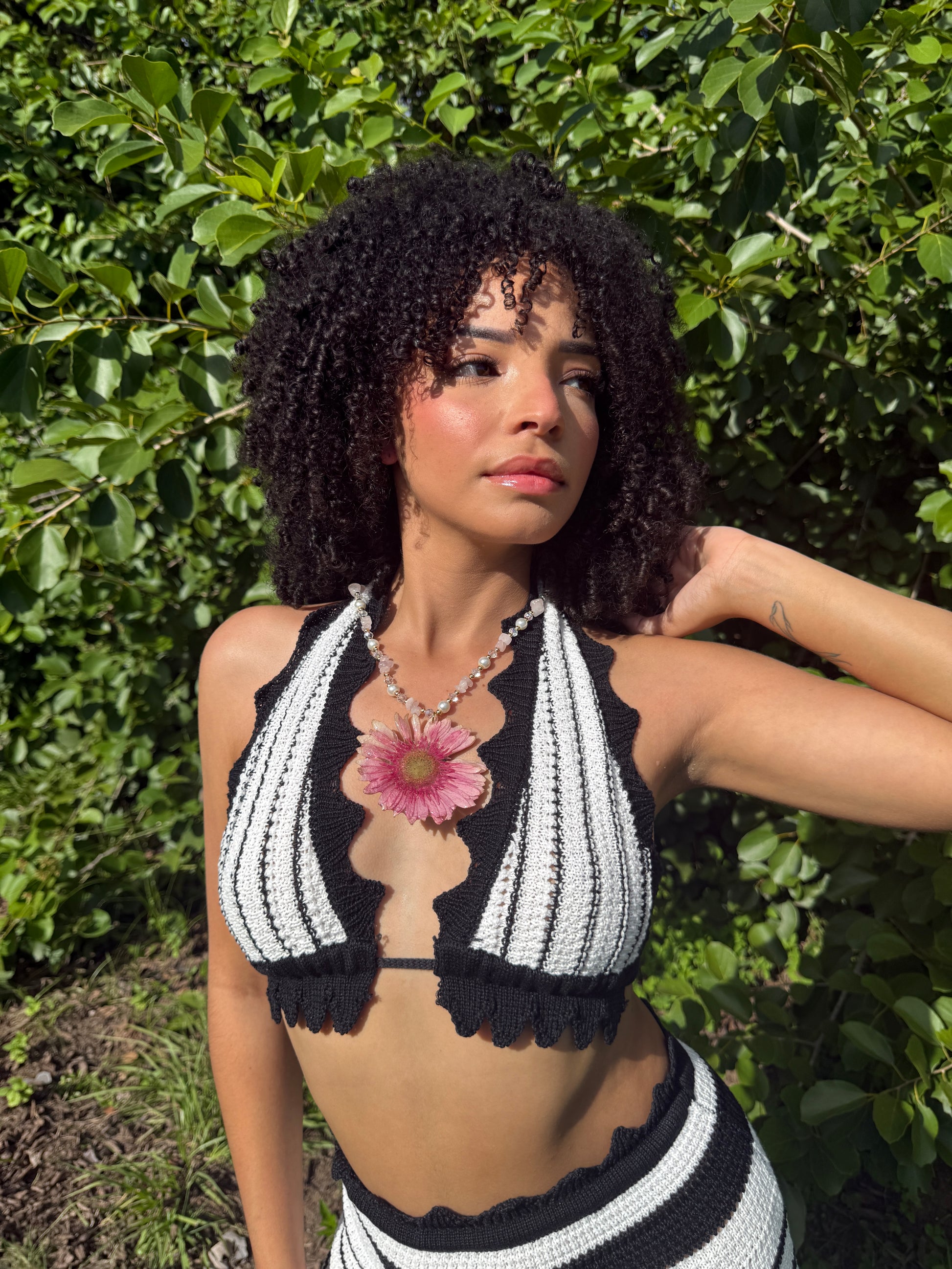 Collar elaborado con una flor natural de gerbera rosada, preservada cuidadosamente para mantener su color, textura y forma original. Su diseño combina la belleza natural de la flor con una cadena de perlas y piedras semipreciosas, creando una pieza elegante, romántica y llena de vida.